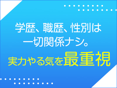 学歴、職歴、性別は一切関係ナシ。実力やる気を最重視