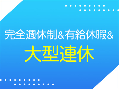 完全週休2日制 夏季・冬季休暇あり 完全週休制、時間交代制なのでダラダラと仕事をするような社風は一切ありません。 オンオフがしっかり切り分けられる職場なのでプライベートも充実できます。 |