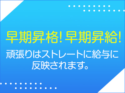 早期昇格!早期昇給!頑張りはストレートに給与に反映されます。